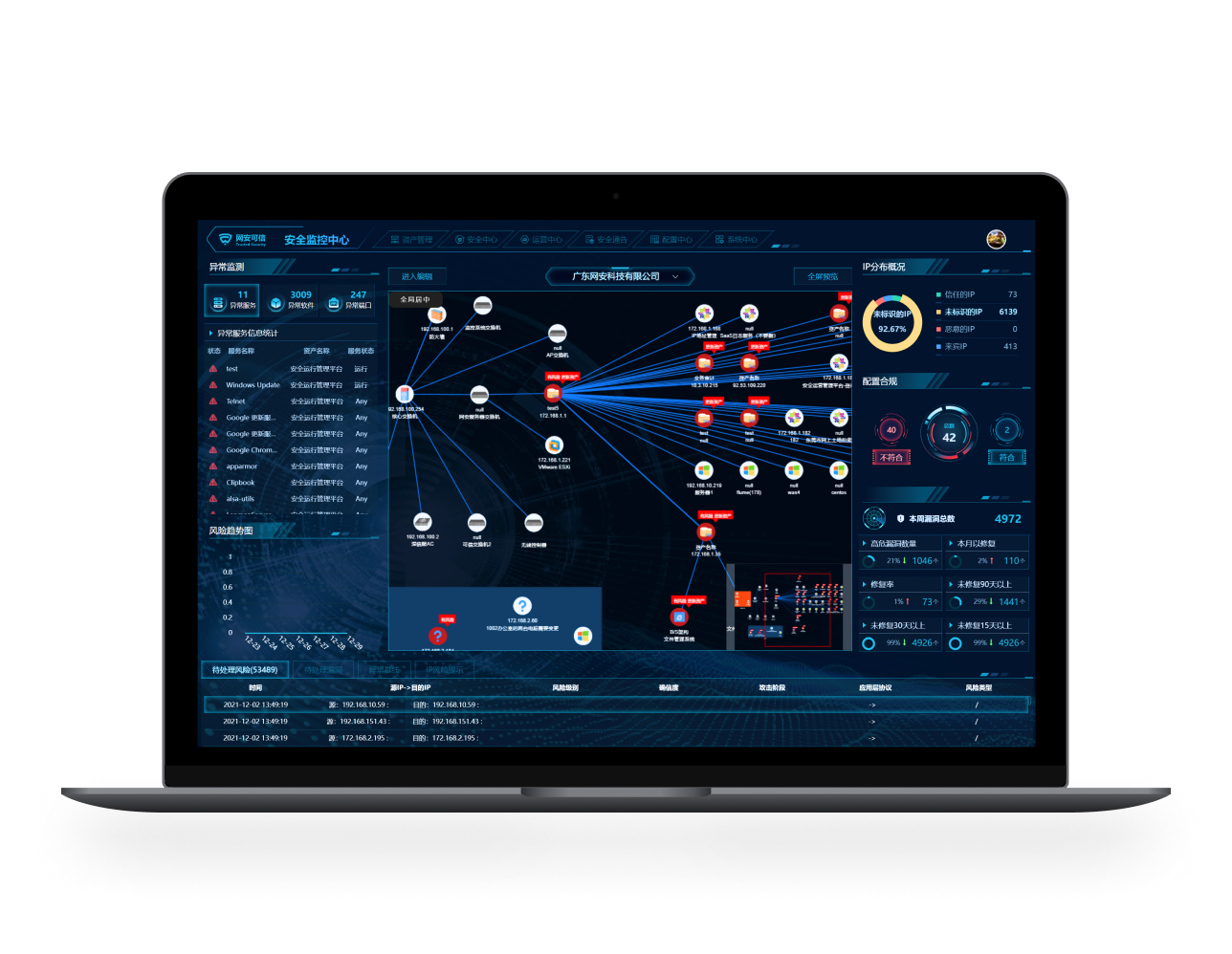 安全運(yùn)營管理平臺(tái)是集資產(chǎn)管理、IP管理、資產(chǎn)處置、基線管理、風(fēng)險(xiǎn)管理、漏洞管理、安全通告、運(yùn)營中心于一體的系統(tǒng),在平臺(tái)上解決技術(shù)人員、業(yè)務(wù)人員、管理人在資產(chǎn)管理、項(xiàng)目管理、安全運(yùn)維、運(yùn)維巡檢等工作問題